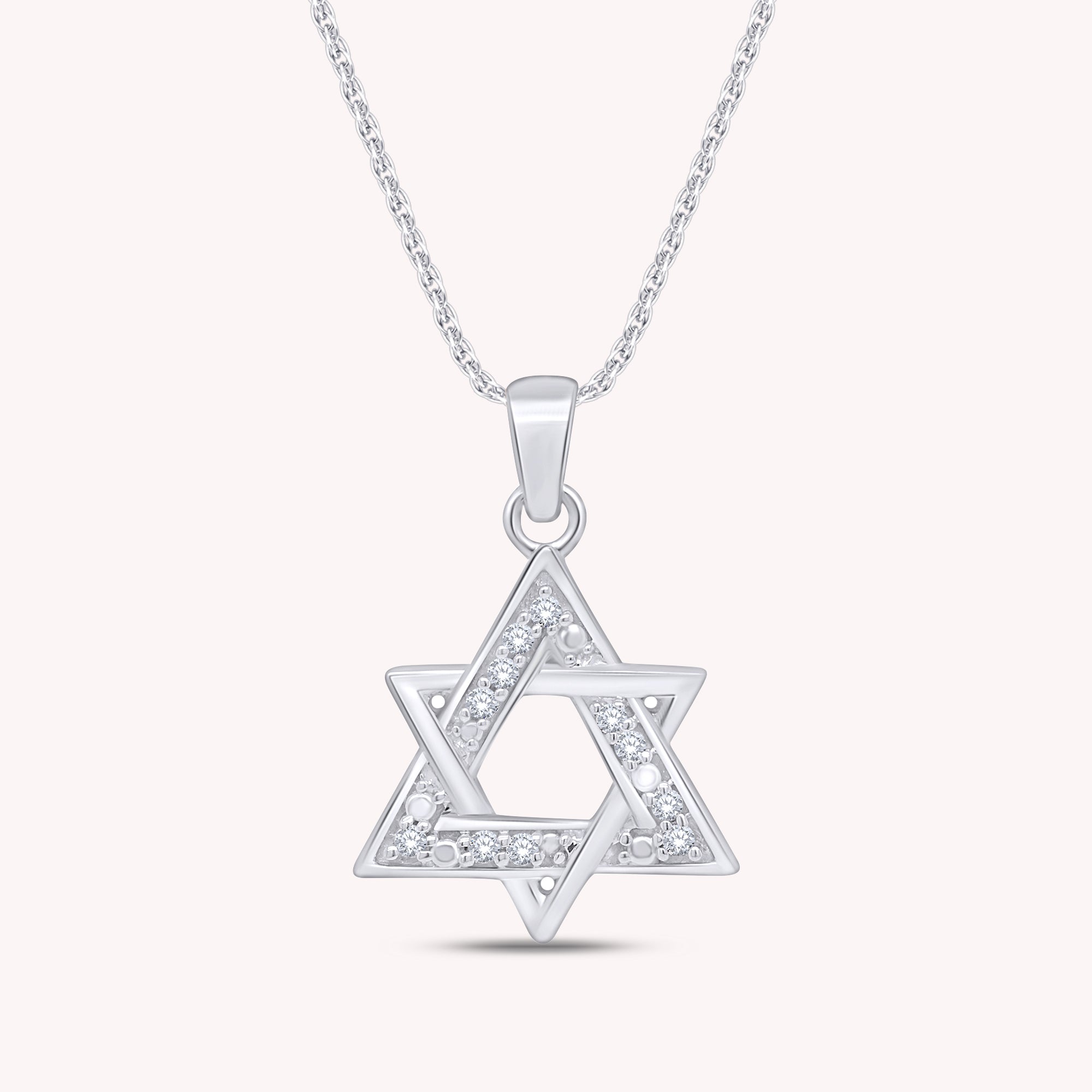 0.1 Ct White Natural Diamond Star of David Pendant Necklace