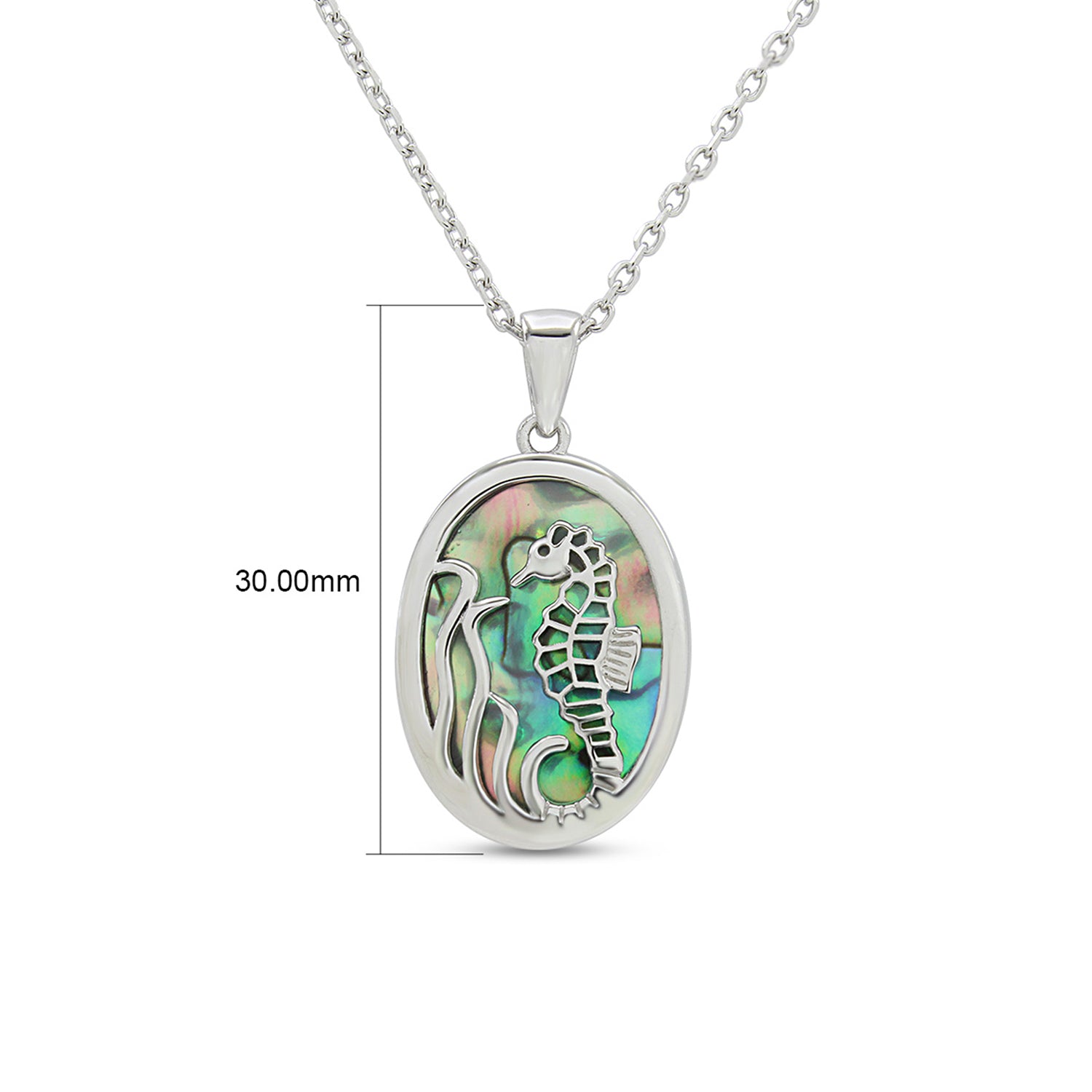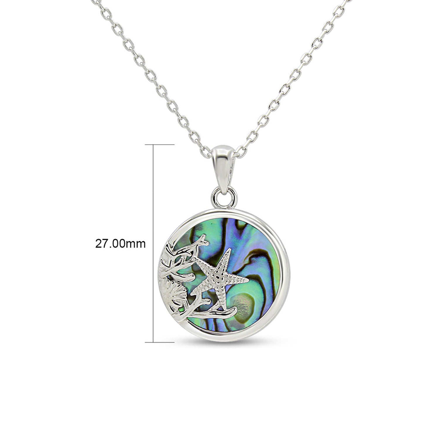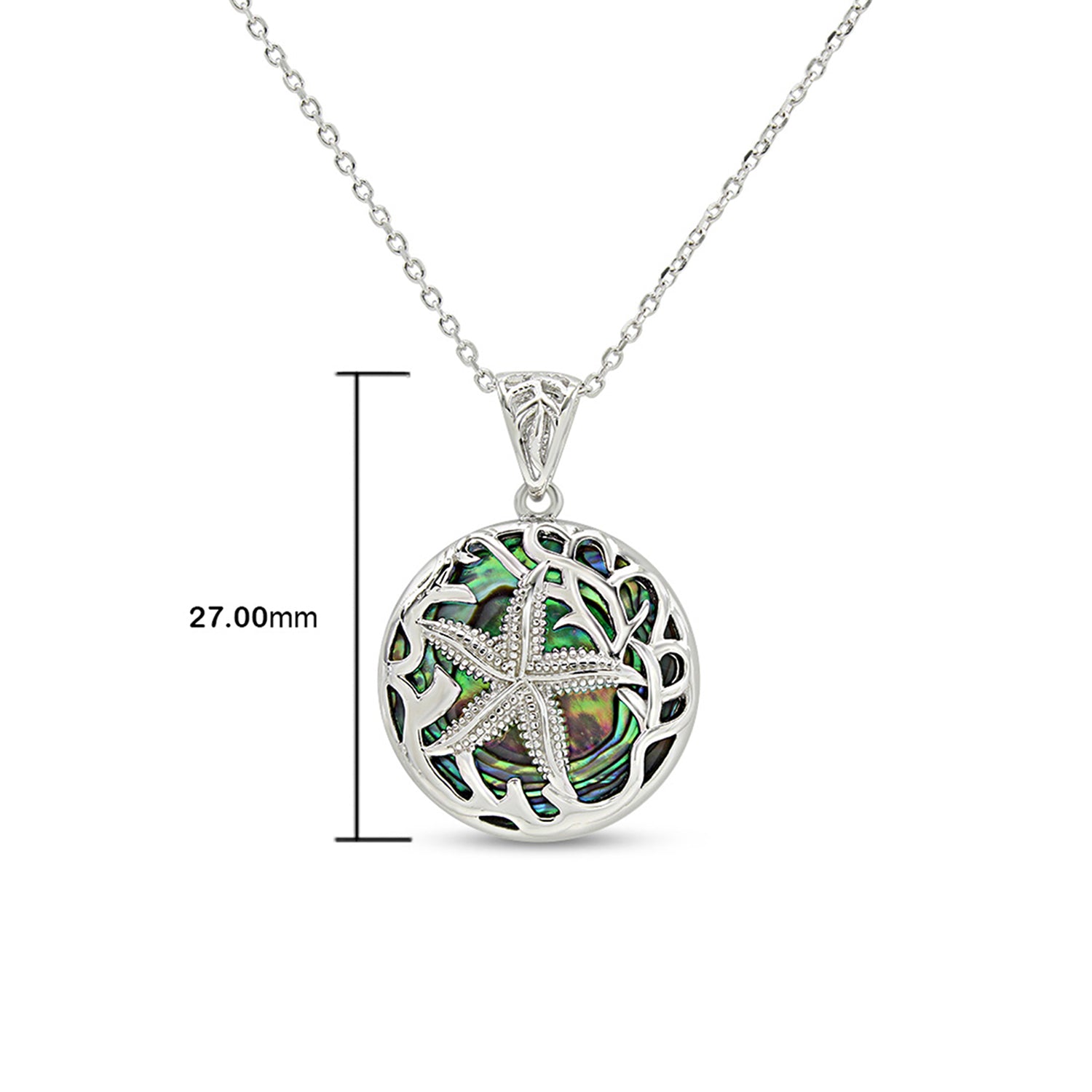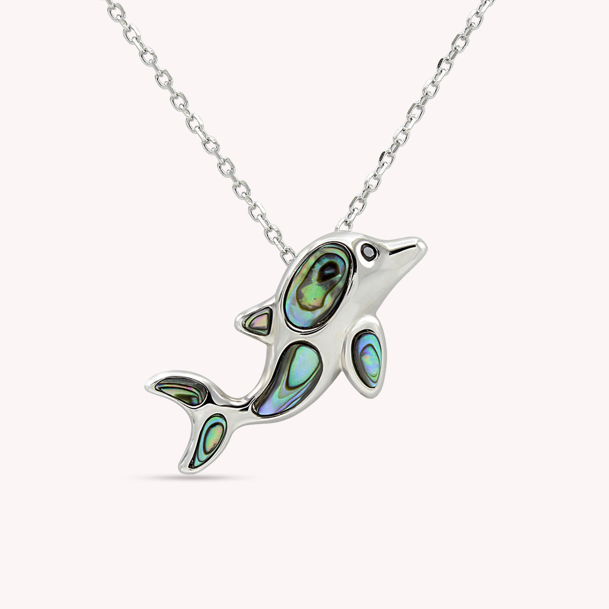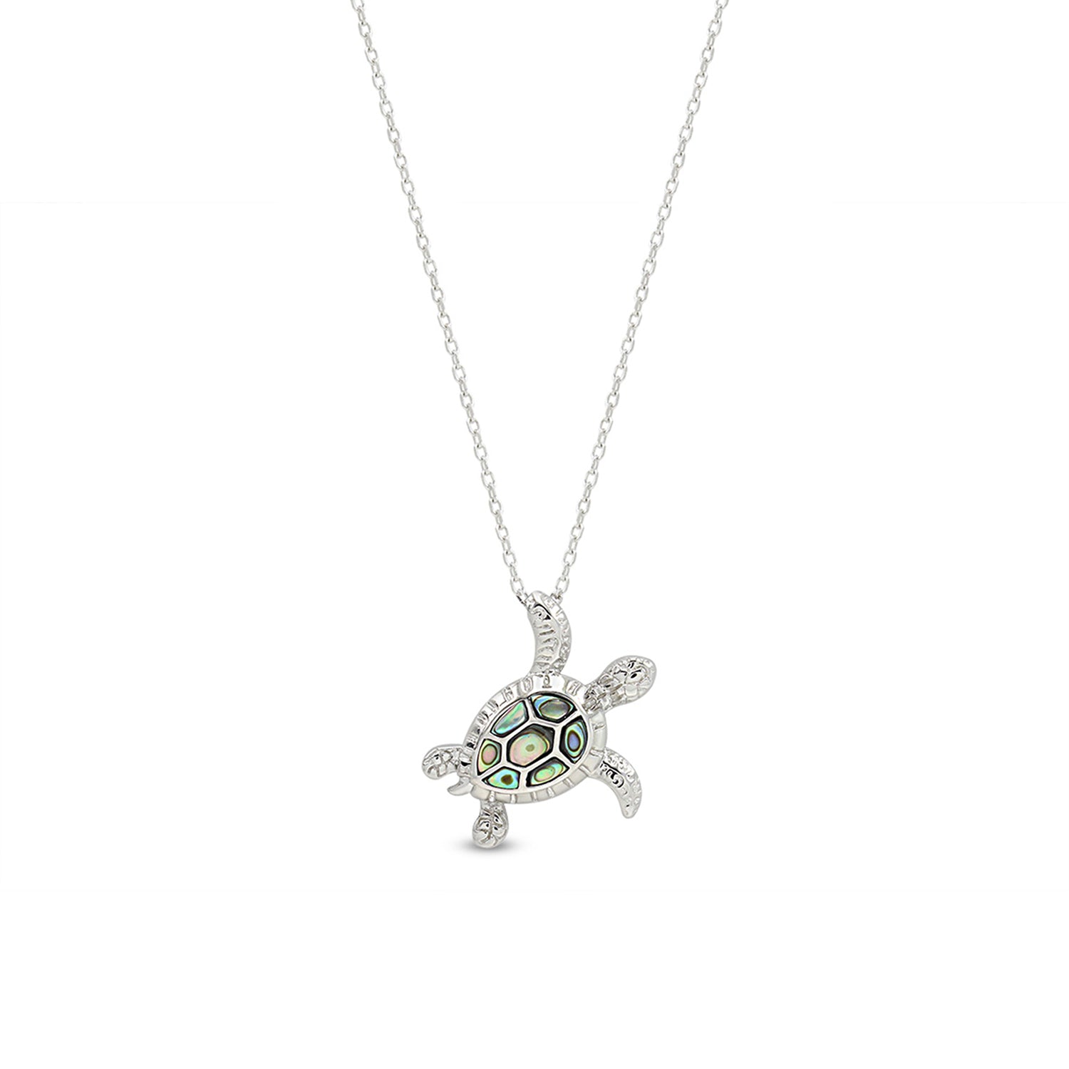 Wear your ocean love with pride with this exquisite abalone shell animal pendant necklace. Crafted in luxurious 14K white gold over sterling silver and featuring a unique shell animal in your choice of a starfish, dolphin, seahorse, frog, dragonfly, whale tail, or turtle, this piece is sure to be the perfect finishing touch to any outfit. Whether a heartfelt gift or a personal indulgence, this stunning pendant necklace will add a touch of elegance and sophistication to any wardrobe.