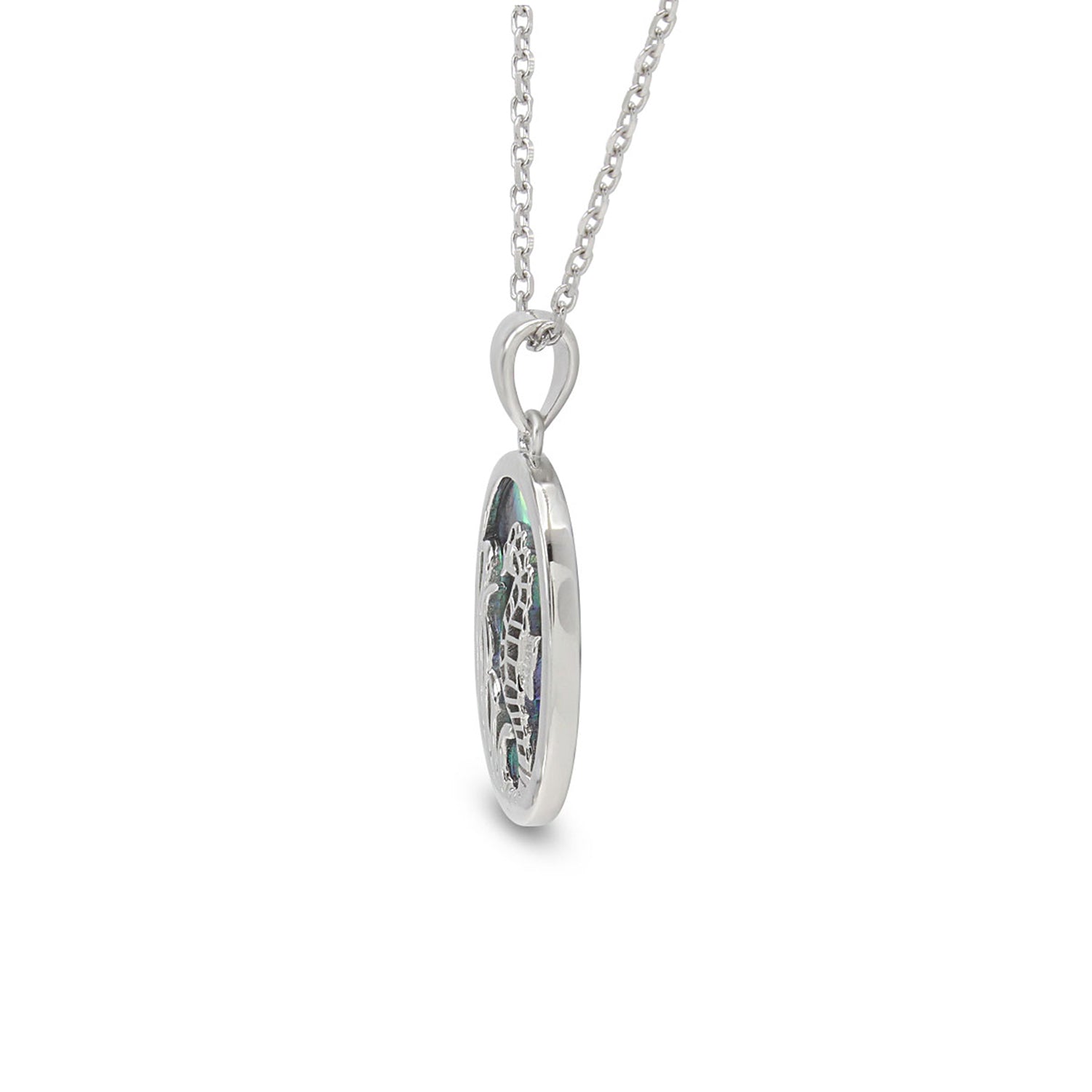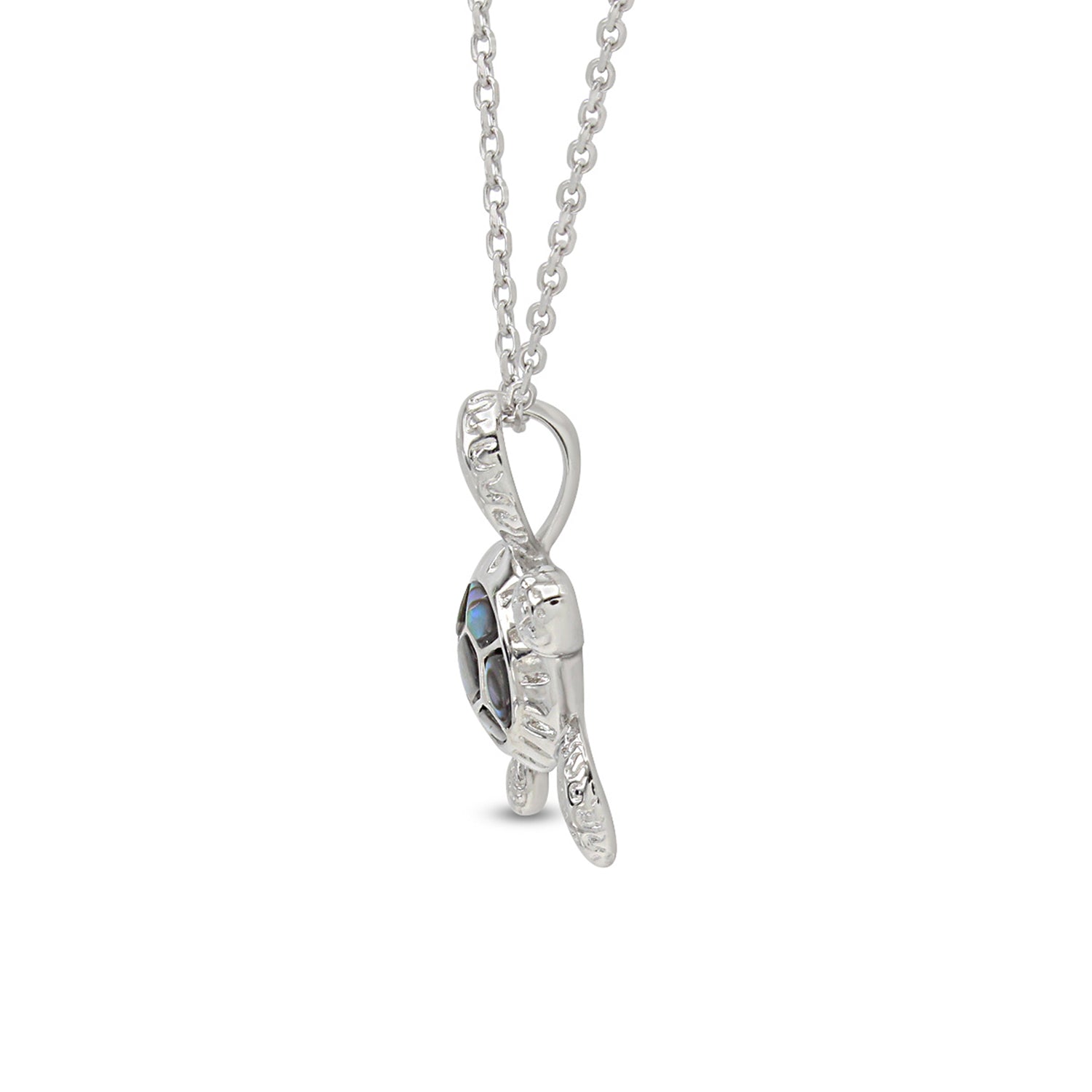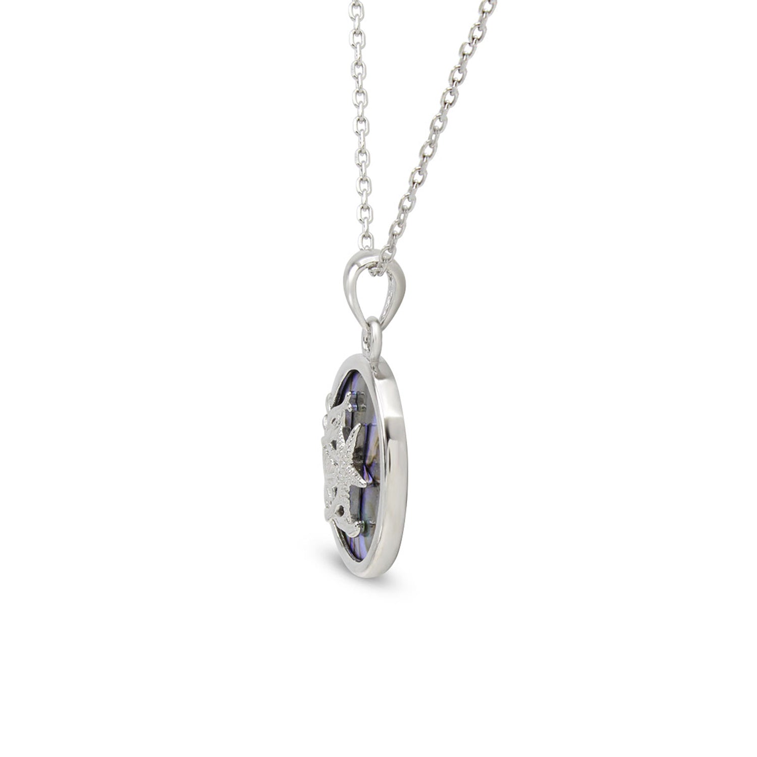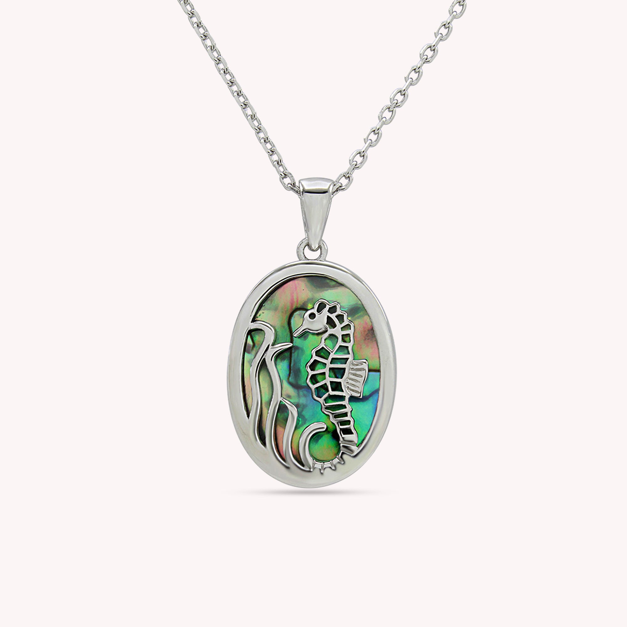 Wear your ocean love with pride with this exquisite abalone shell animal pendant necklace. Crafted in luxurious 14K white gold over sterling silver and featuring a unique shell animal in your choice of a starfish, dolphin, seahorse, frog, dragonfly, whale tail, or turtle, this piece is sure to be the perfect finishing touch to any outfit. Whether a heartfelt gift or a personal indulgence, this stunning pendant necklace will add a touch of elegance and sophistication to any wardrobe.