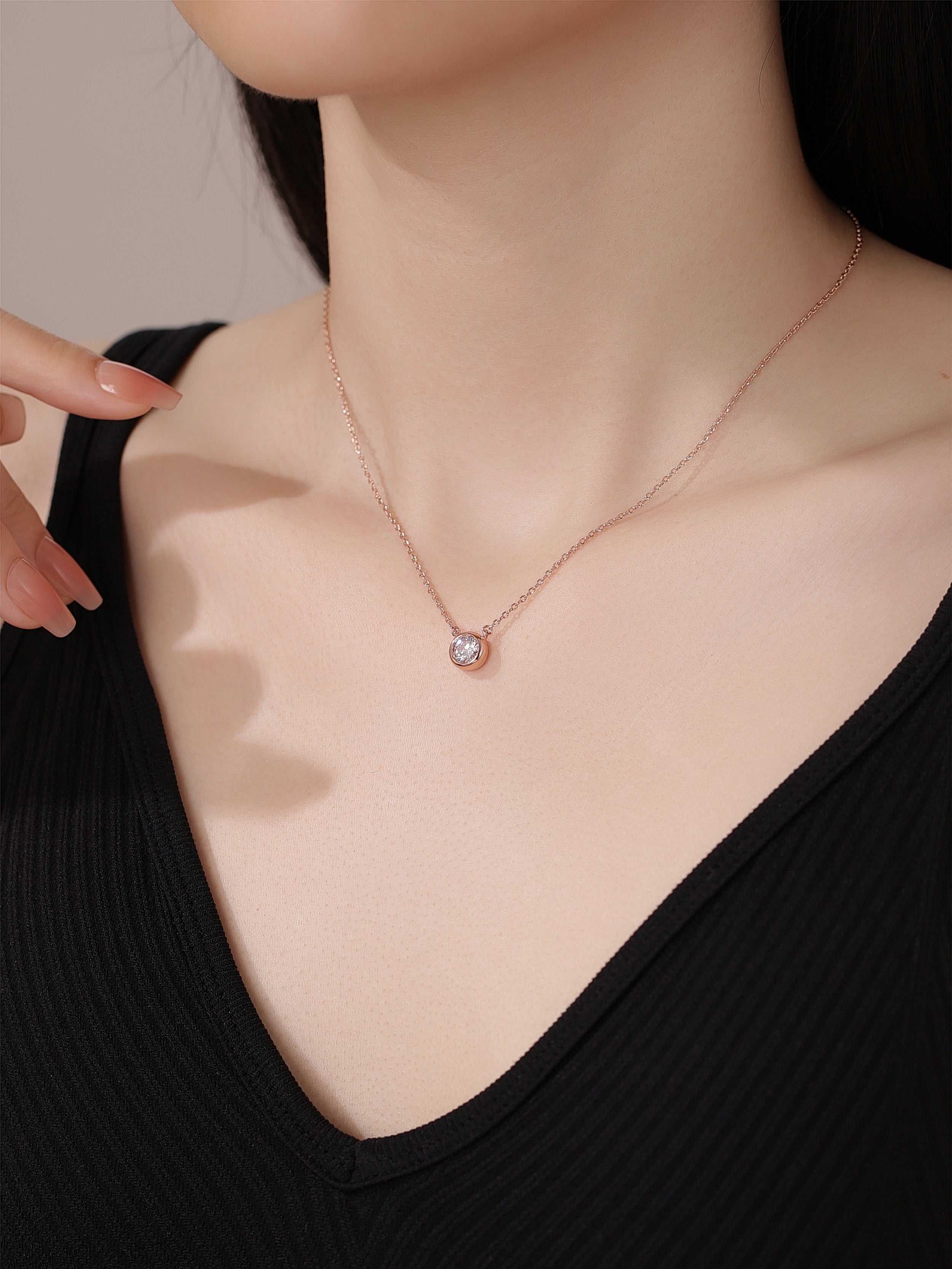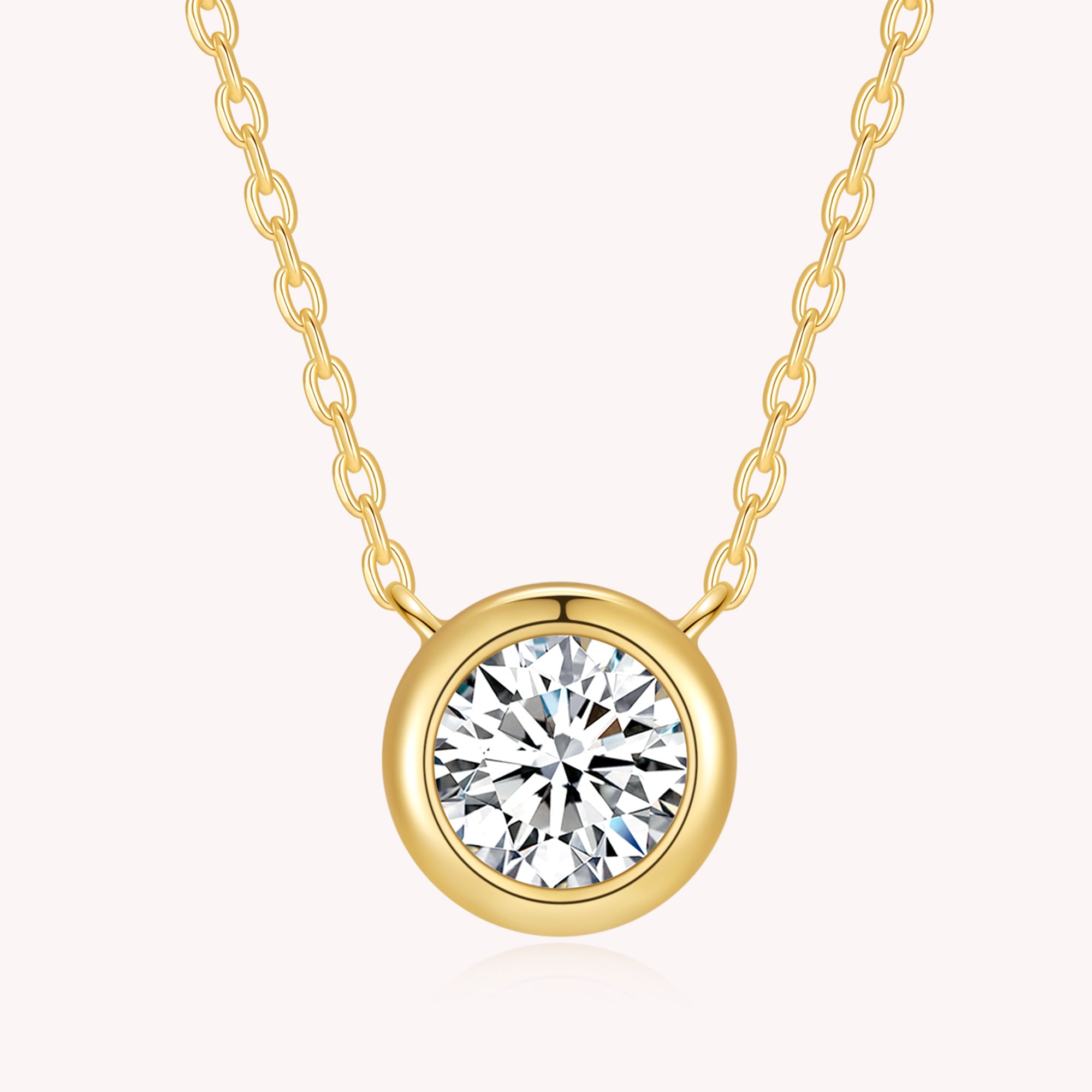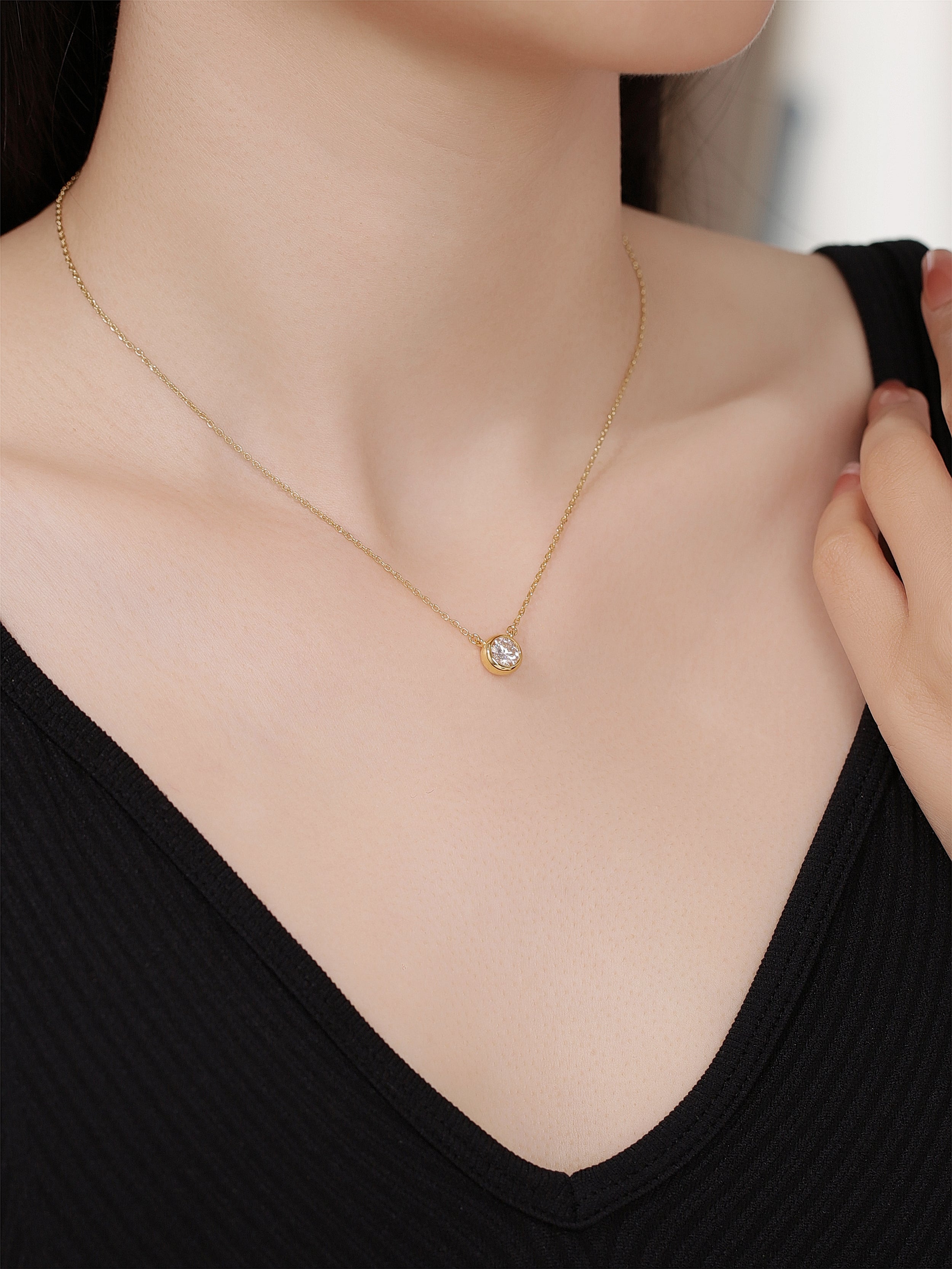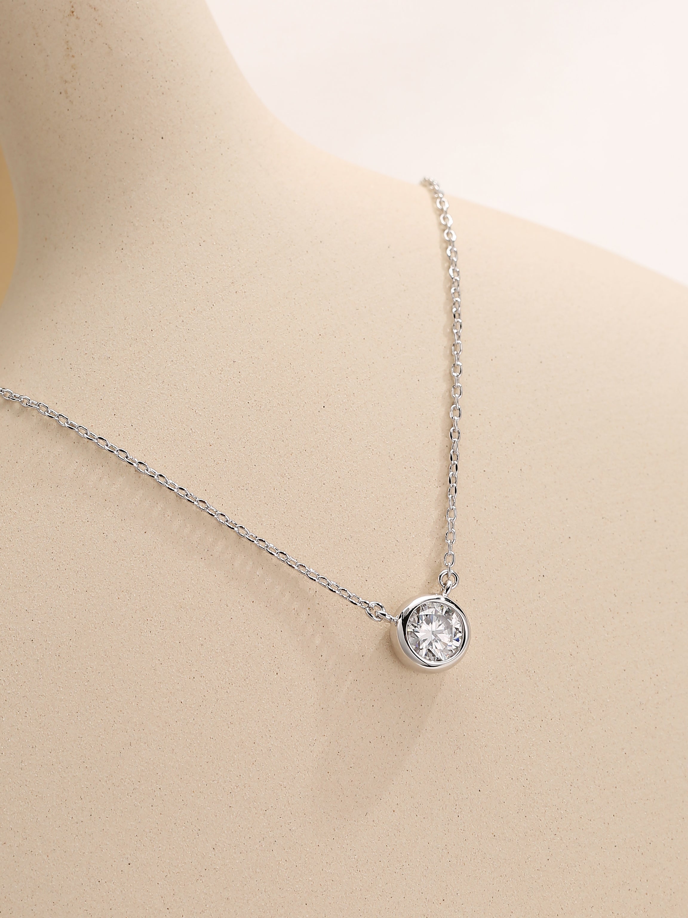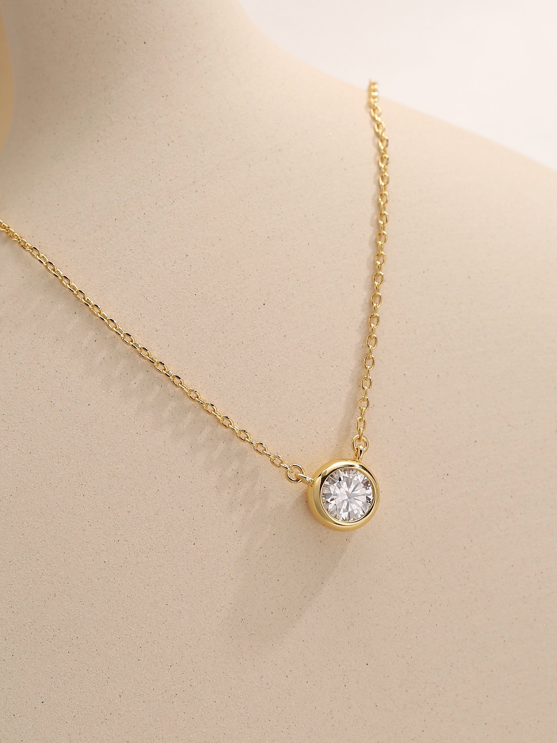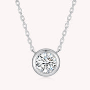 This elegant necklace showcases a striking bezel-set diamond that captures attention with its sleek and modern design. The secure setting highlights the diamond's brilliance, creating a timeless piece that enhances any ensemble.