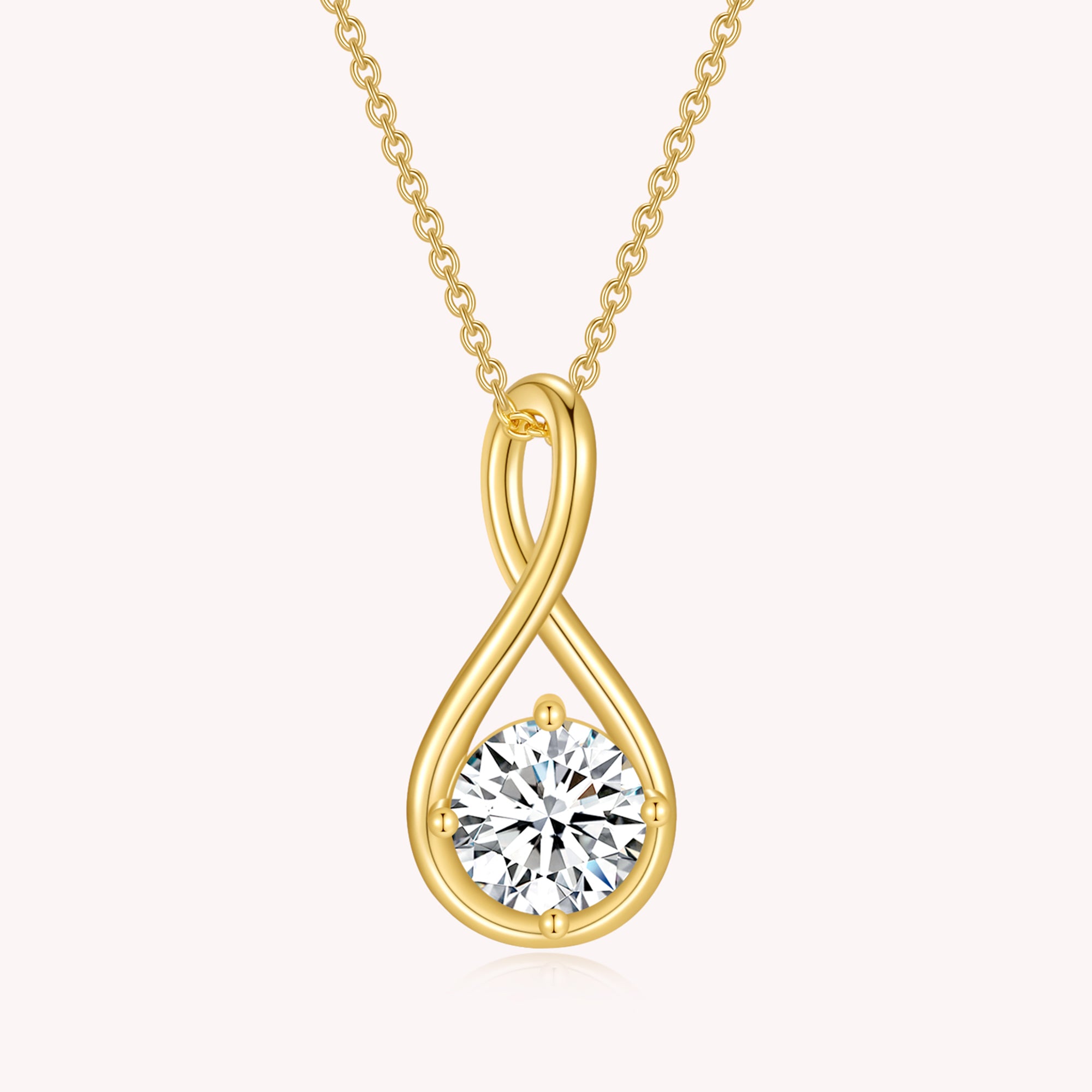 This stunning pendant necklace features a captivating solitaire design that embodies the concept of infinity. Its elegant lines and brilliant diamond create a timeless piece, symbolizing endless love and connection.