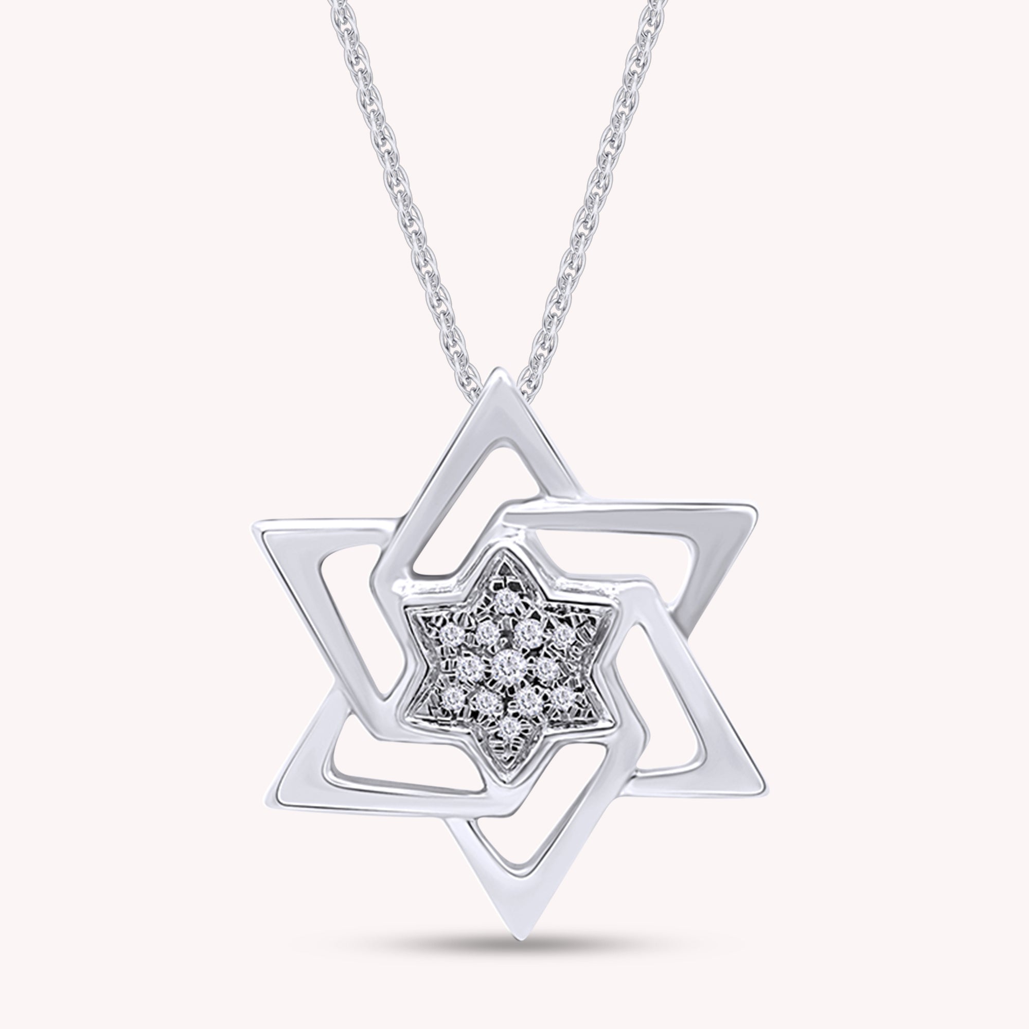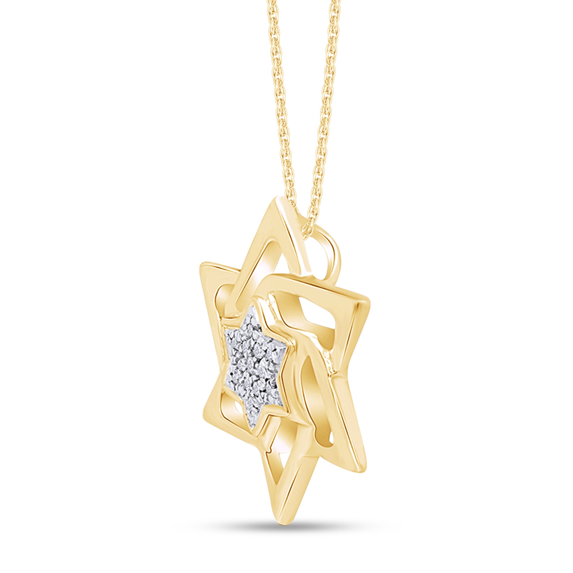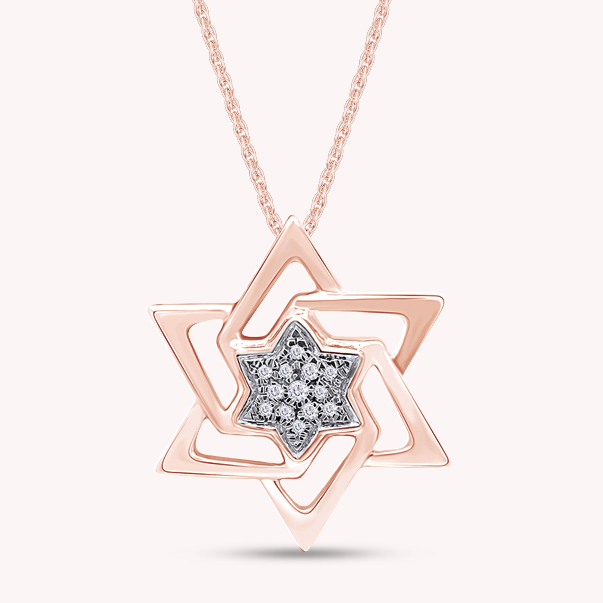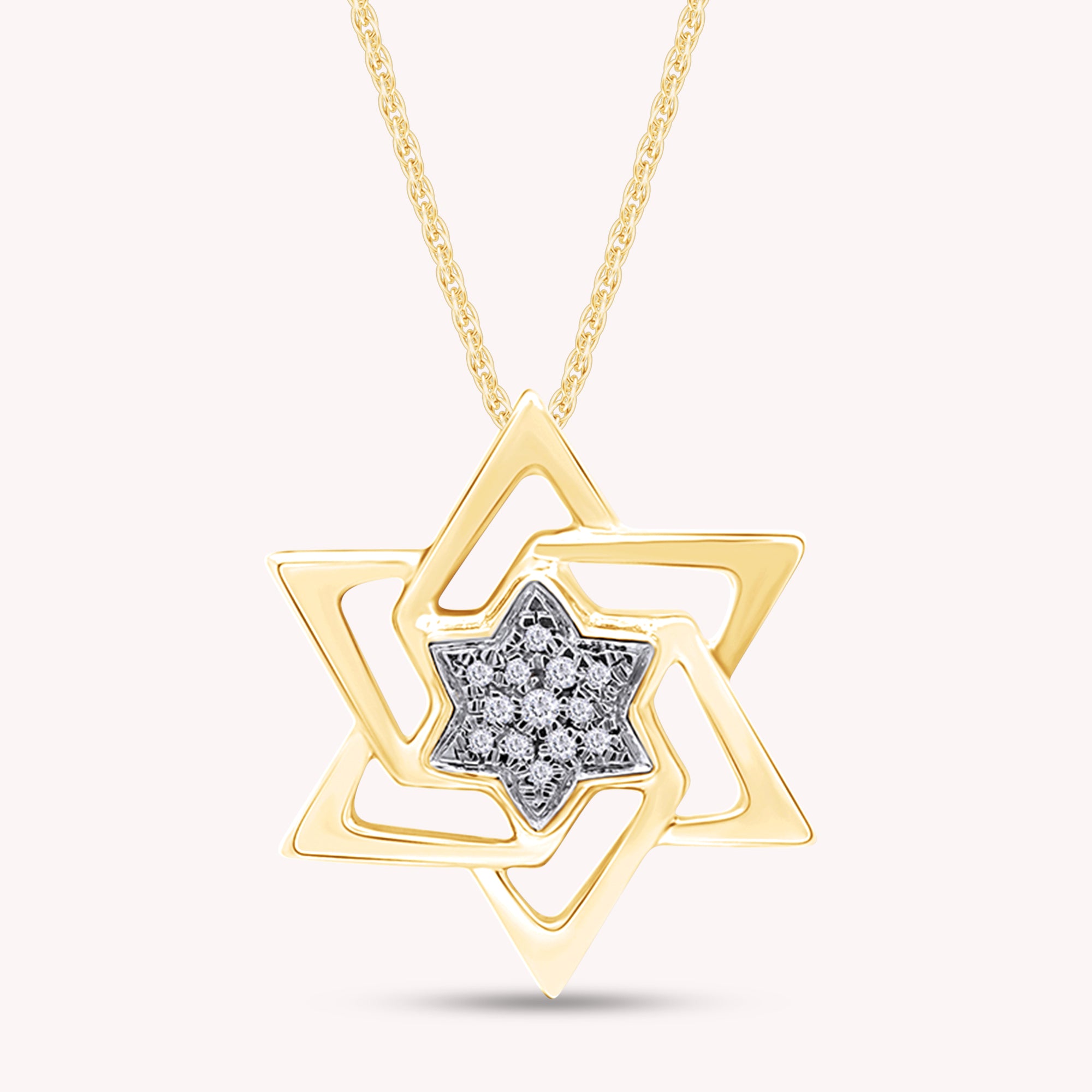 Elevate your style with our Round White Natural Diamond Star Of David Pendant Necklace. Crafted in 14K Solid Gold, this exquisite necklace features a stunning star of David pendant necklace adorned with 0.04 carats of sparkling diamonds. Make a meaningful statement with this elegant and exclusive piece.