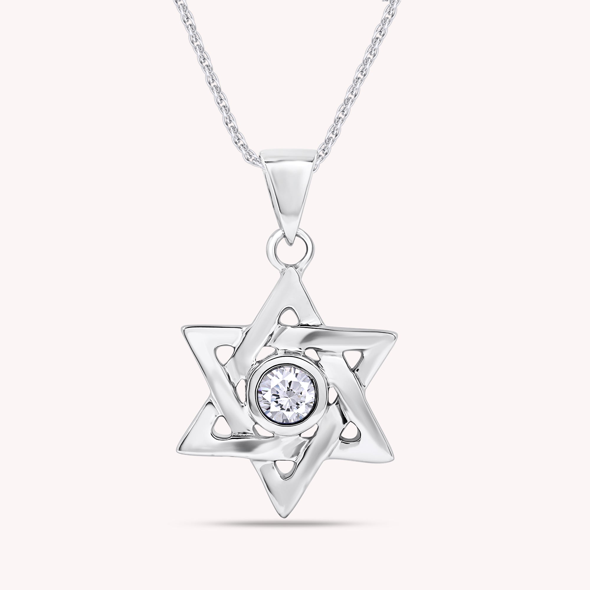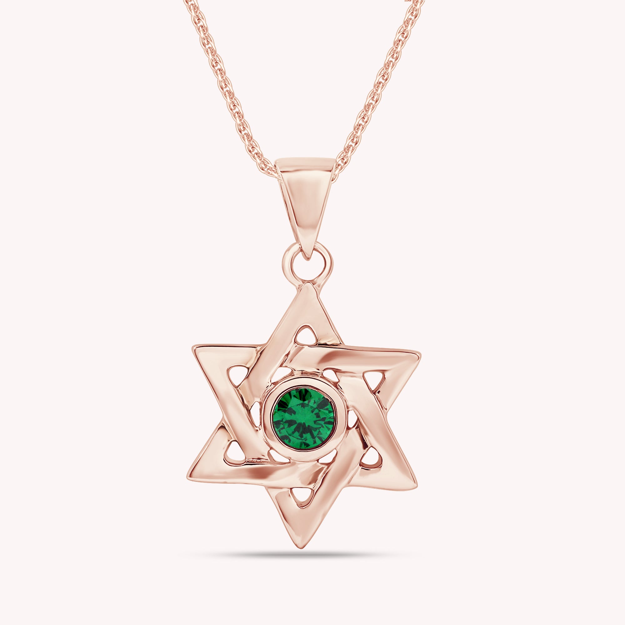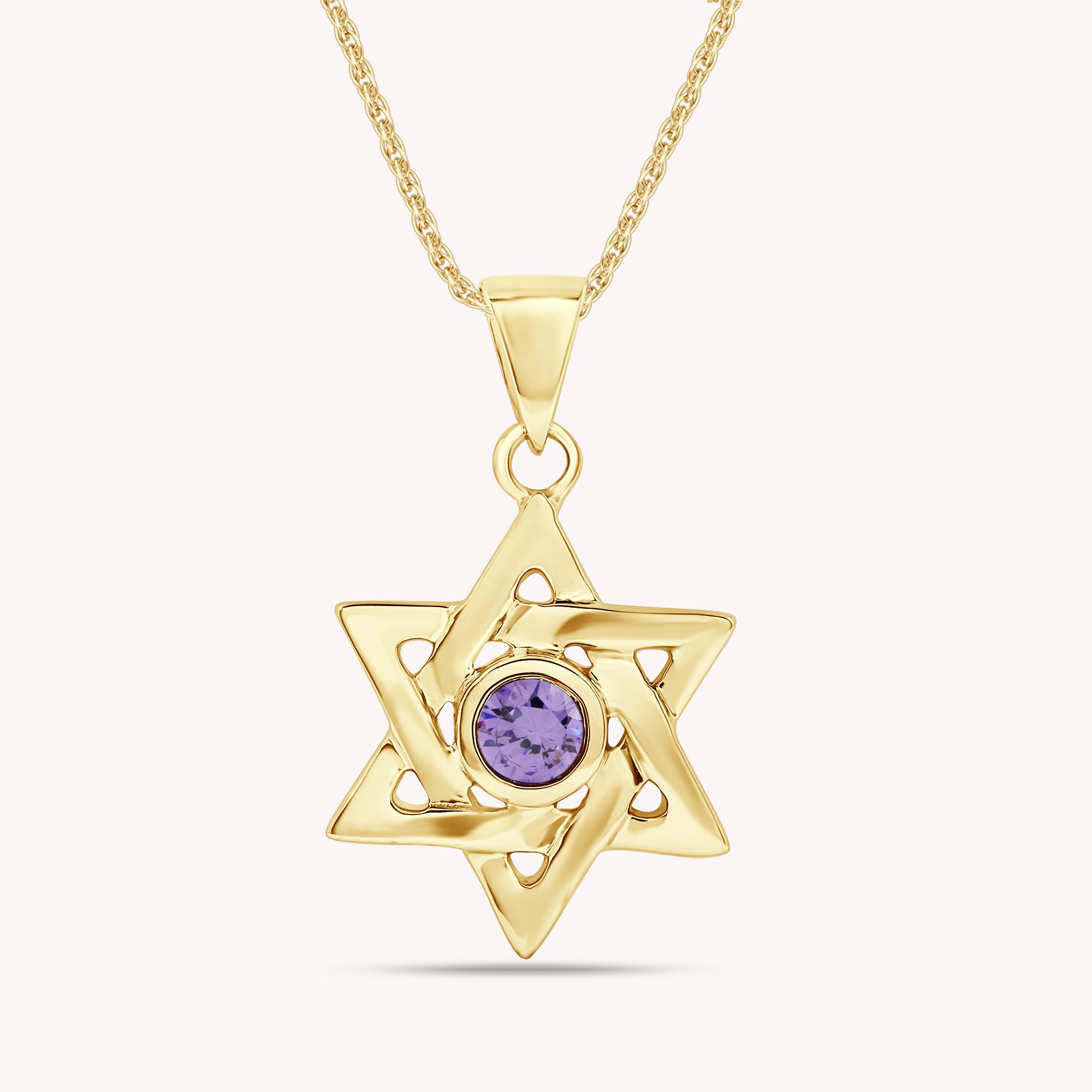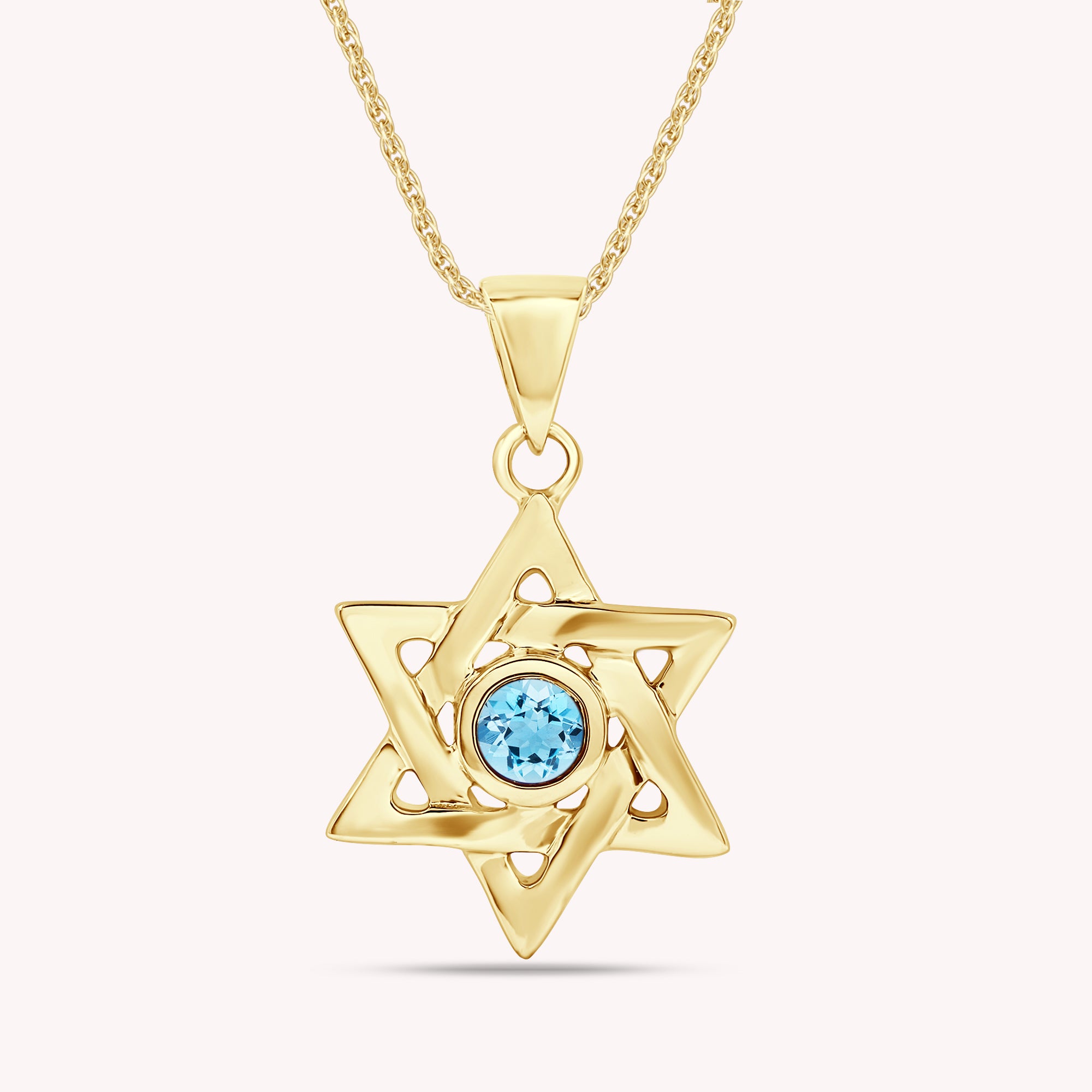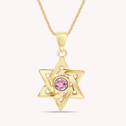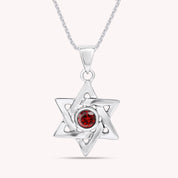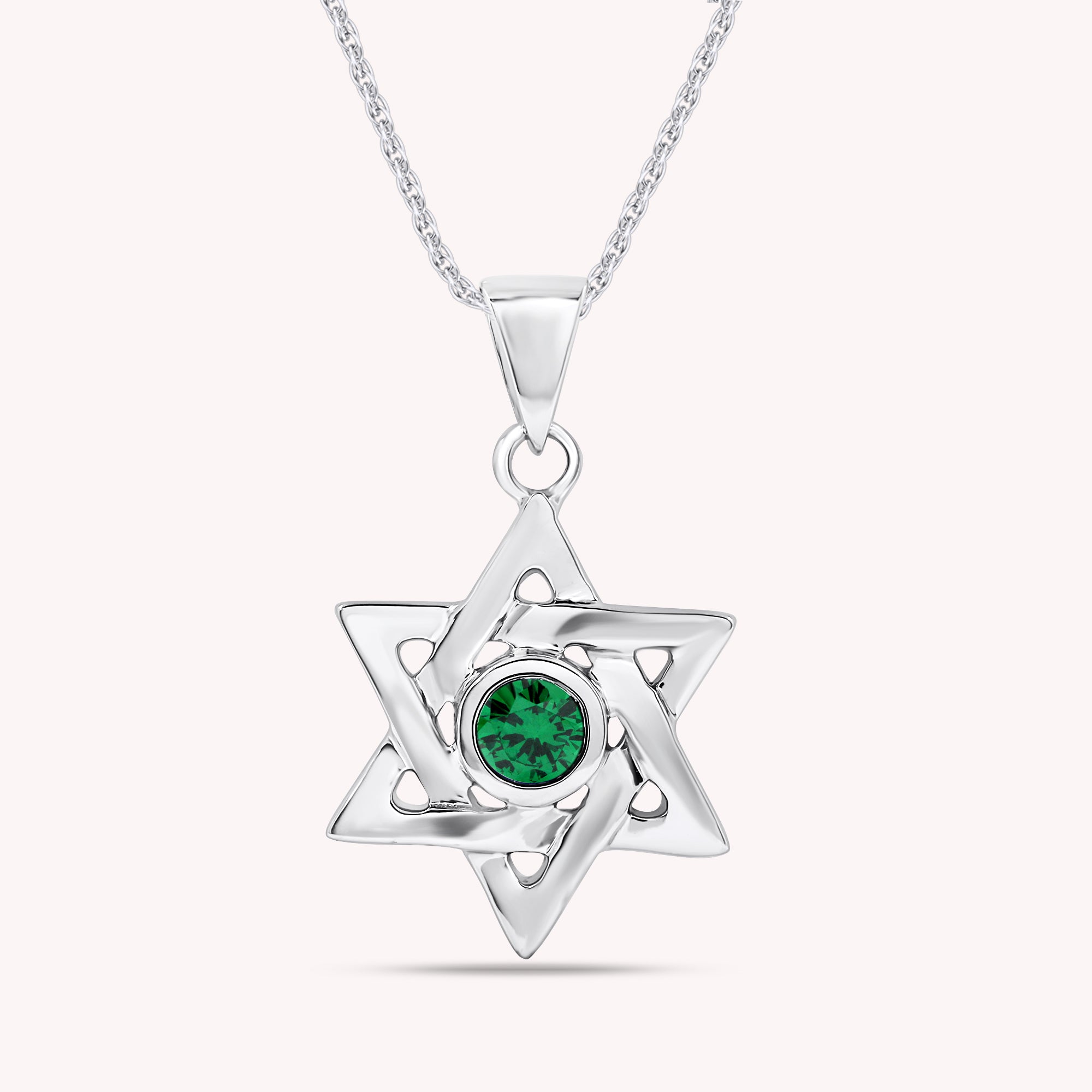 Simulated Round Birthstone Jewish Star of David Pendant Necklace
