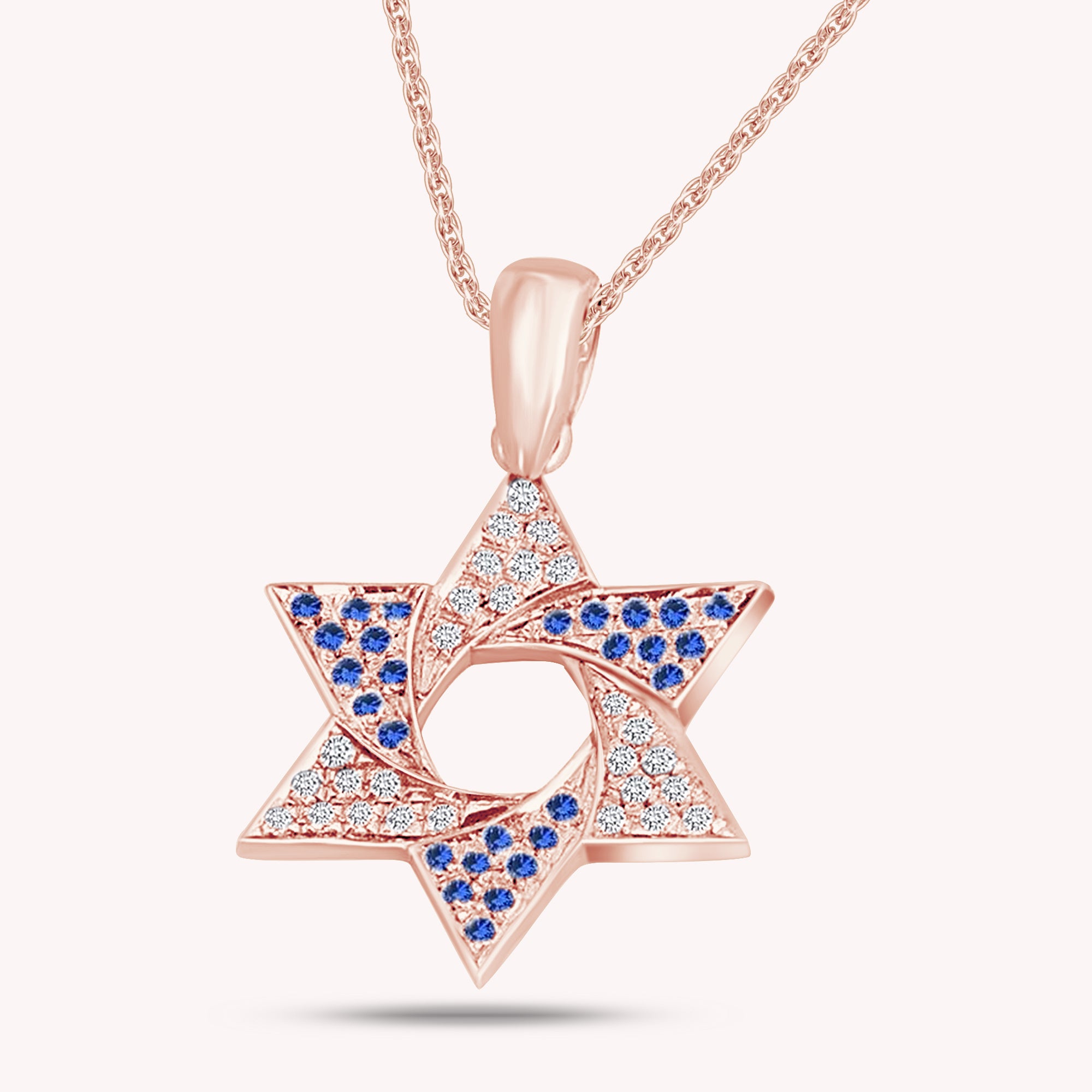 Simulated Sapphire & White CZ Star of David Pendant Necklace In 925 Sterling Silver