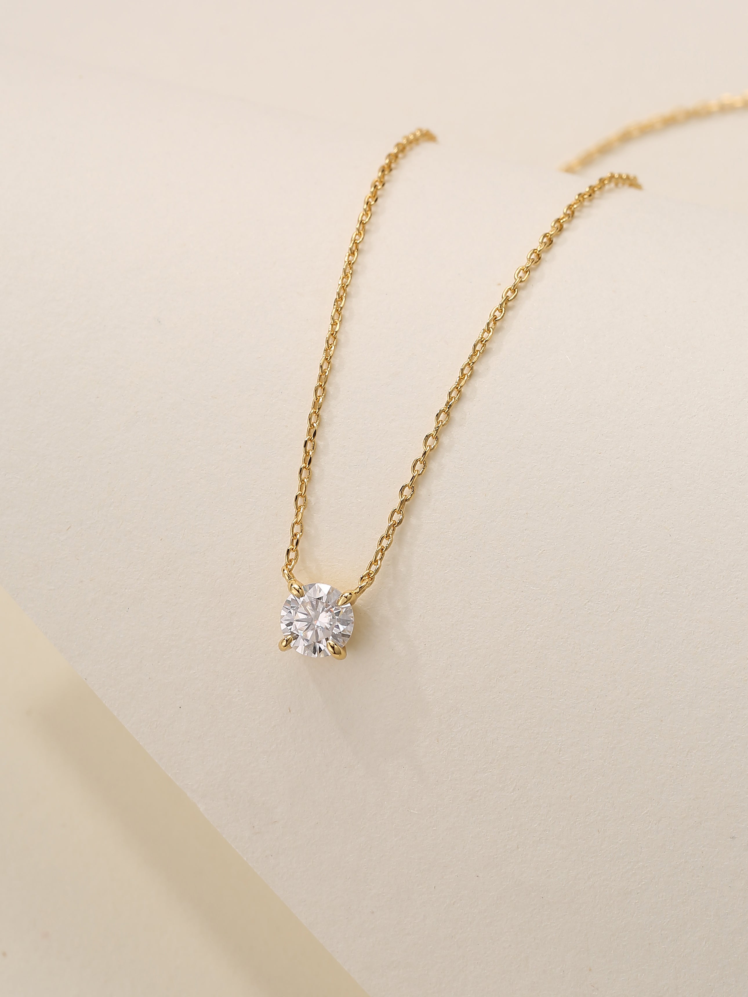 This exquisite necklace features a single sparkling diamond that beautifully enhances its overall allure. The simplicity of its design highlights the diamond's brilliance, creating a striking and timeless piece that stands out elegantly.