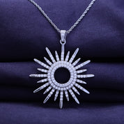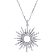 White Cubic Zirconia Sunburst Pendant Necklace