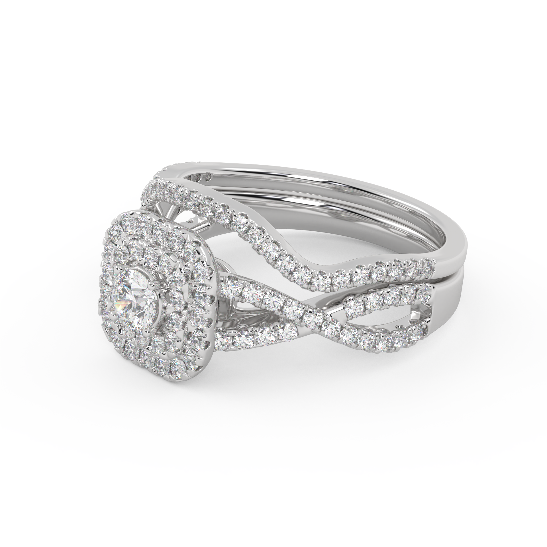 Round Cut 0.90 Carat Lab Grown Diamond Twisted Infinity Halo Solitaire Bridal Set Ring