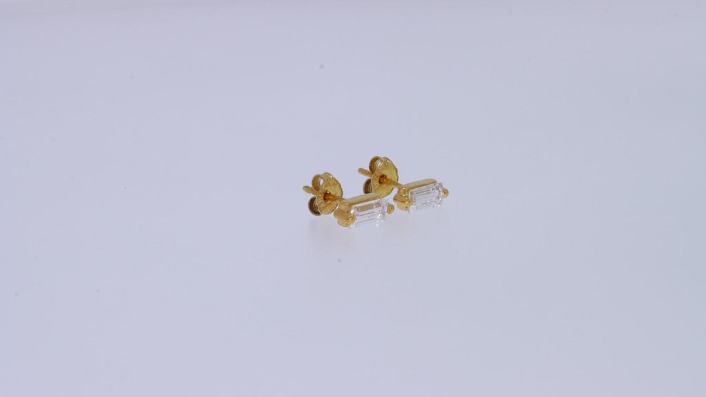 Elevate your elegance with these stunning solitaire stud earrings, featuring a brilliant baguette lab created moissanite in each piece. The sophisticated combination of mixed metals creates a modern, versatile look that complements any style. Lab Created Moissanite offer exceptional quality and sparkle while being an environmentally conscious choice. The delicate chain design adds graceful movement and dimension to your everyday wear or special occasions. Perfect for those seeking luxury with a contemporary edge.