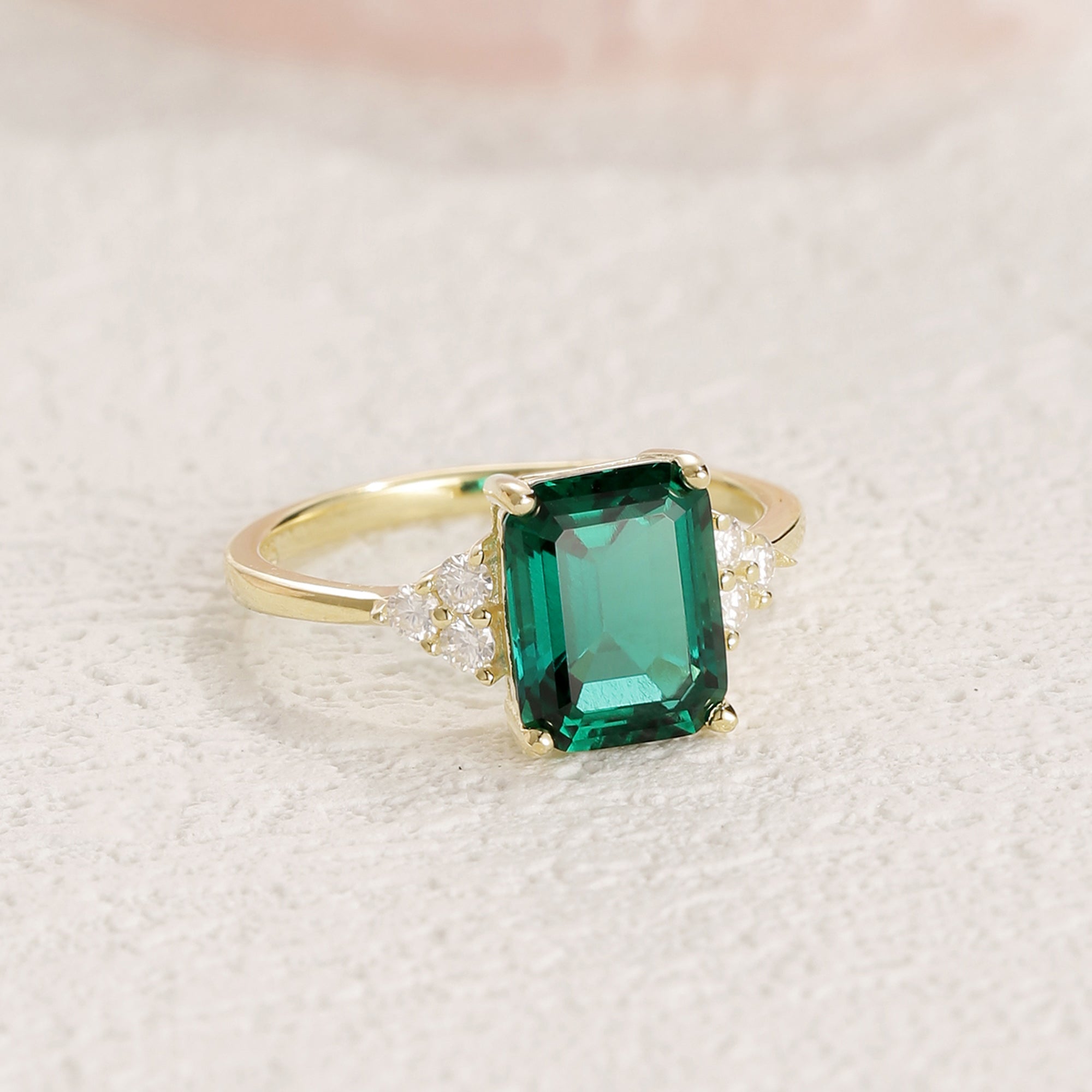 At the heart of this piece lies a captivating emerald, showcased in a refined solitaire setting. The lush green gemstone radiates natural allure, with its vibrant color beautifully complemented by the minimalistic band, creating a design that is both classic and striking.