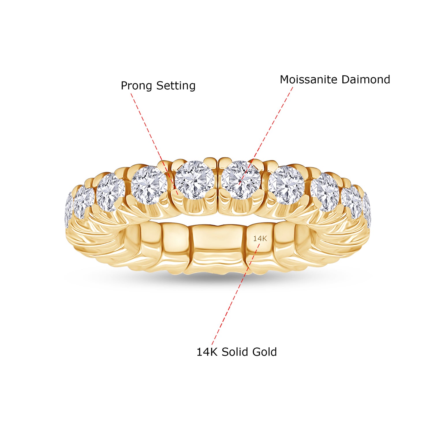 This timeless and elegant Round Cut Lab Created Moissanite Stretchable Eternity Engagement Ring is crafted with care from 10K or 14K solid gold for an exquisite display of luxury and beauty. The captivating display of VVS1 clarity set of diamond stones is sure to dazzle, approx ranging from 2.1 carat Its adjustable, stretchable design ensures a perfect fit for your special day.