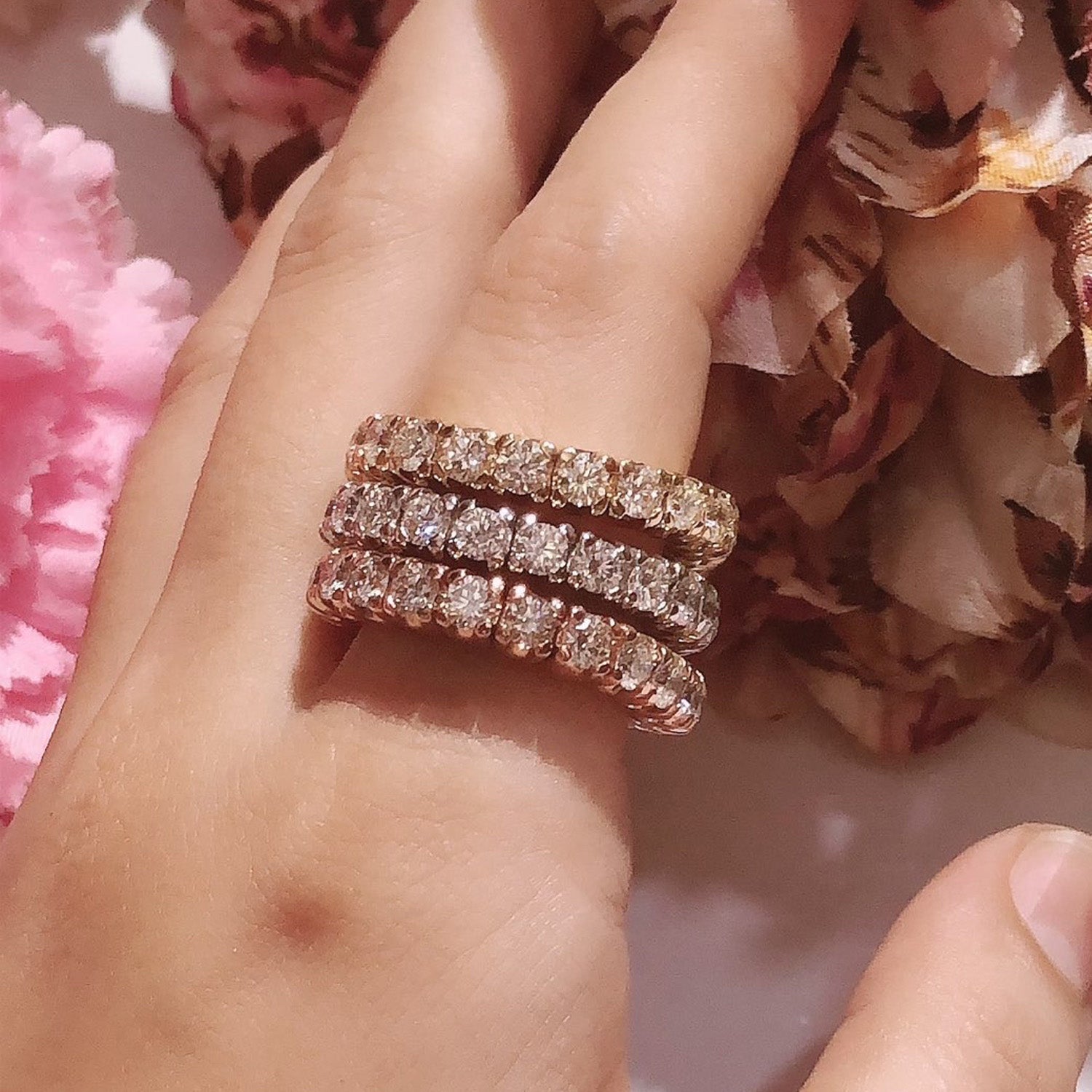 Round Shape Lab Created Moissanite Stretchable Eternity Engagement Ring for Women